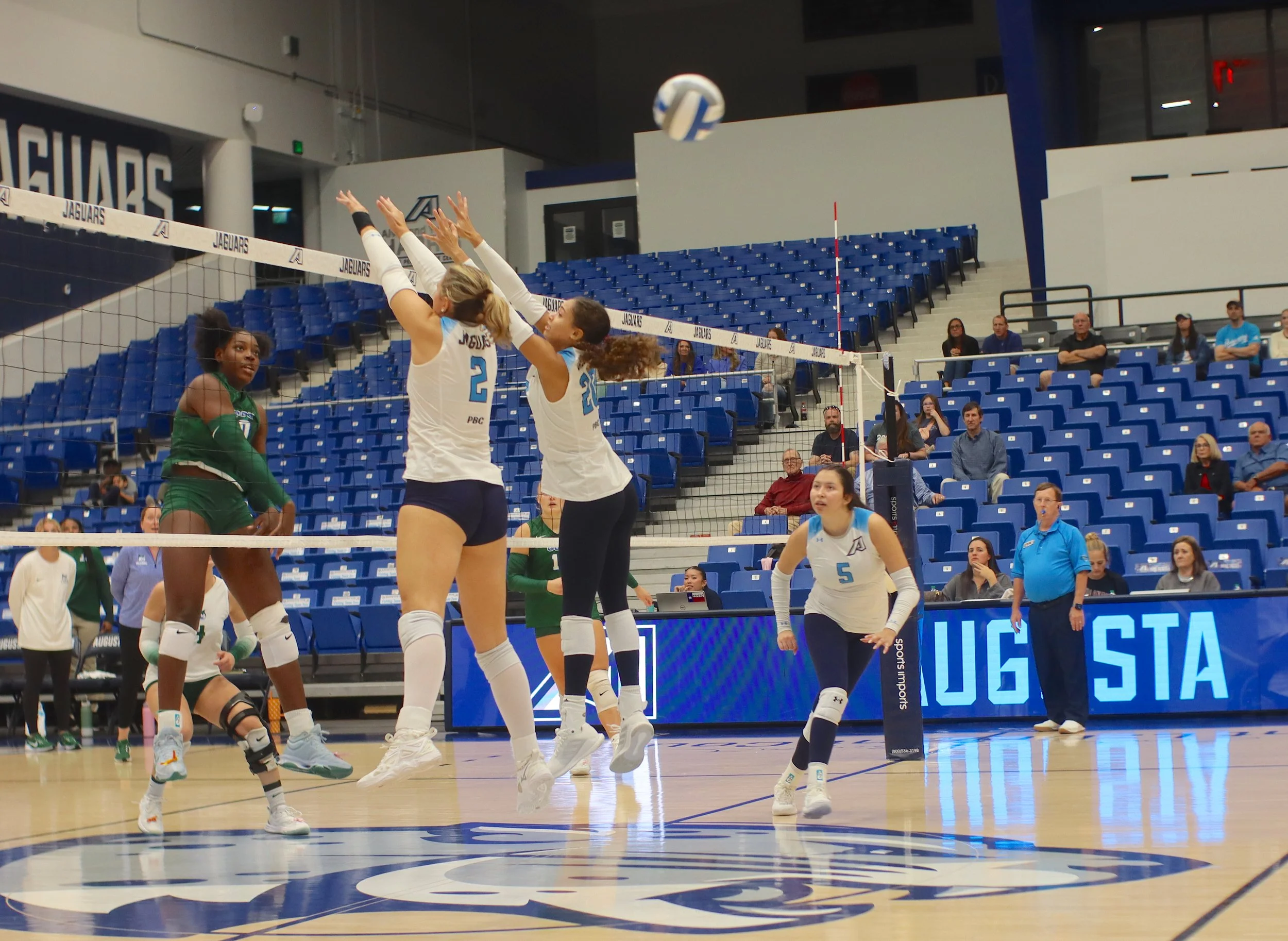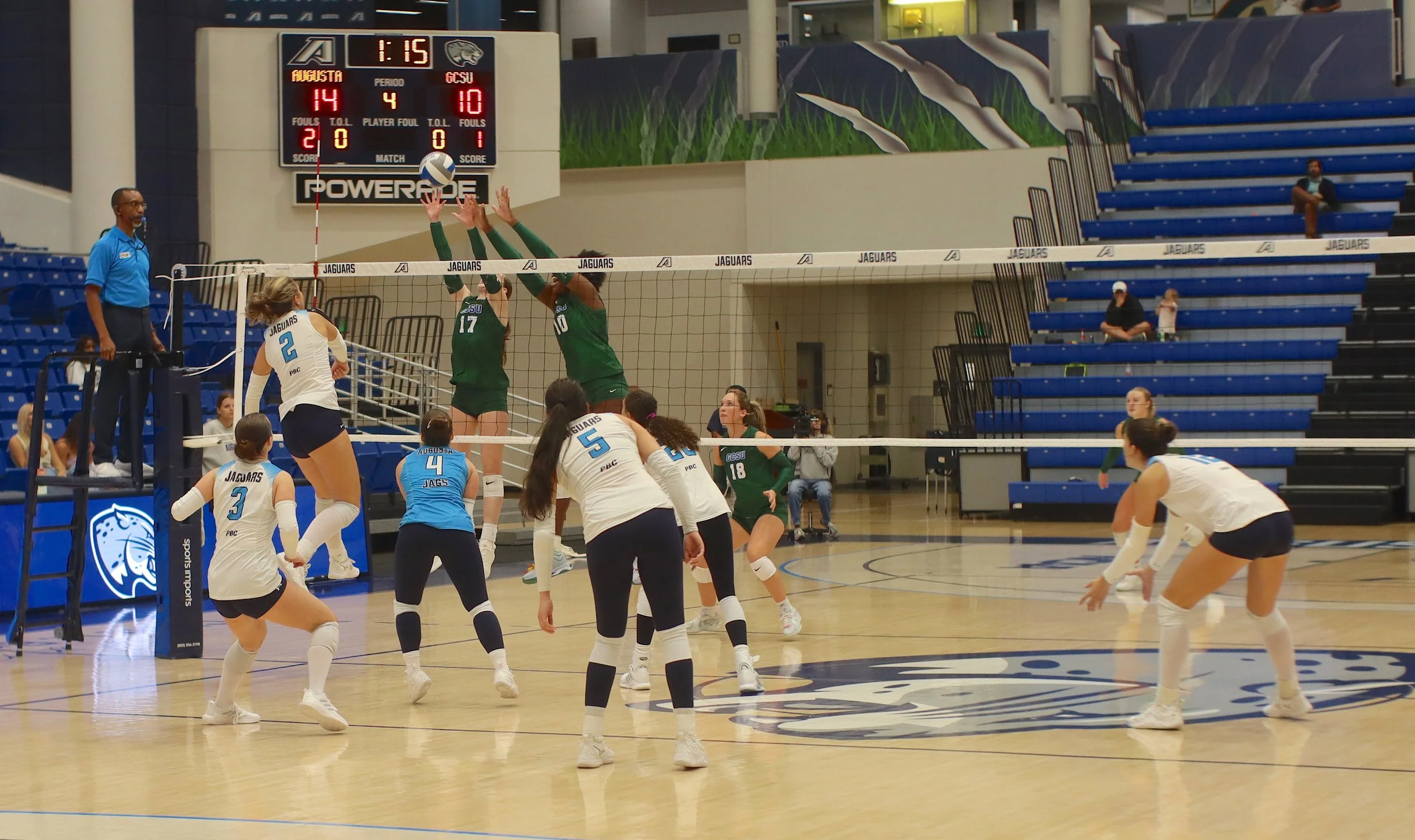Saavedra, the junior from Tampa, Fla., added 29 assists and 22 digs to her kill total. She also hit at a .326 clip to lead the Jaguars, who remain in first place in the Peach Belt, two and a half games ahead of second-place Flagler.