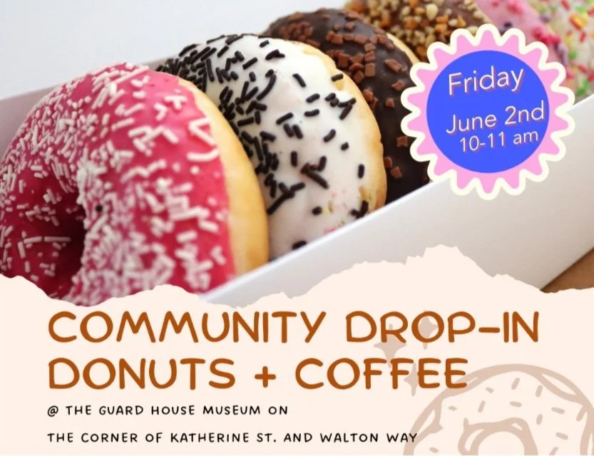 Professor Stacey Thompson, Director of the Guard House Museum, said in a brief statement, “Programs like Donuts+Coffee provide a laid back drop-in where all are welcome to share stories, learn a little history, or simply enjoy a little refreshment.”