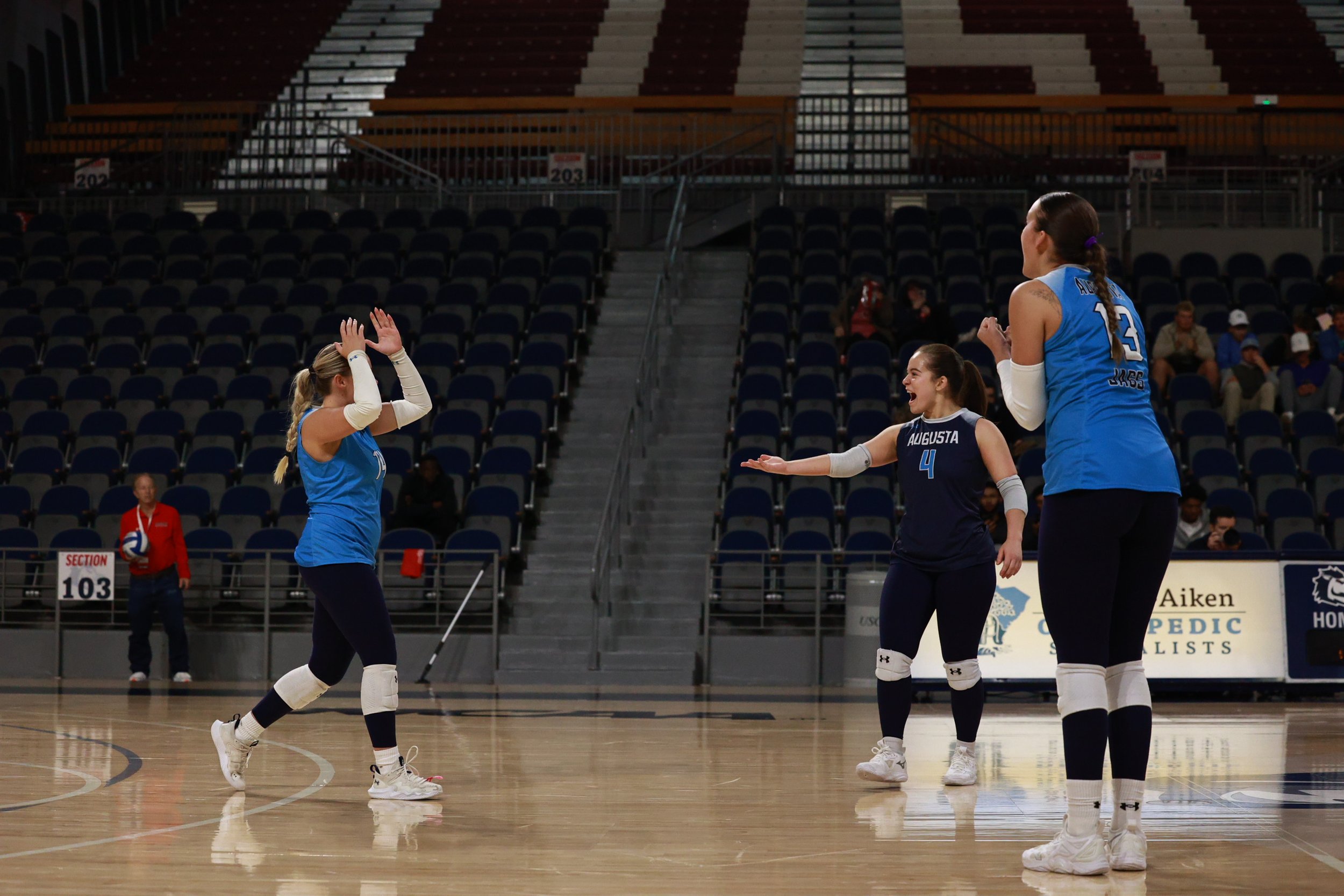 Aiken, S.C.—Inside the USC Aiken Convocation Center, Augusta volleyball bounced back from a tough loss with a composed and balanced performance, defeating the Pacers 26-24, 25-19, 15-25, 25-15 on Tuesday, Nov. 11.