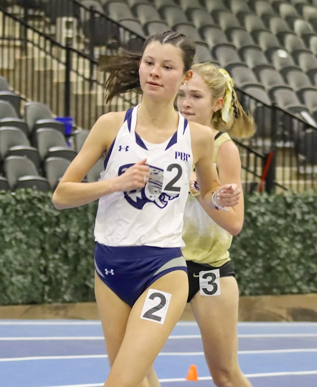 Jourdain (2) takes first place in the 5,000 meters at the Tryon Winter Classic (photo by Anna Biondolillo/the Bell Ringer)