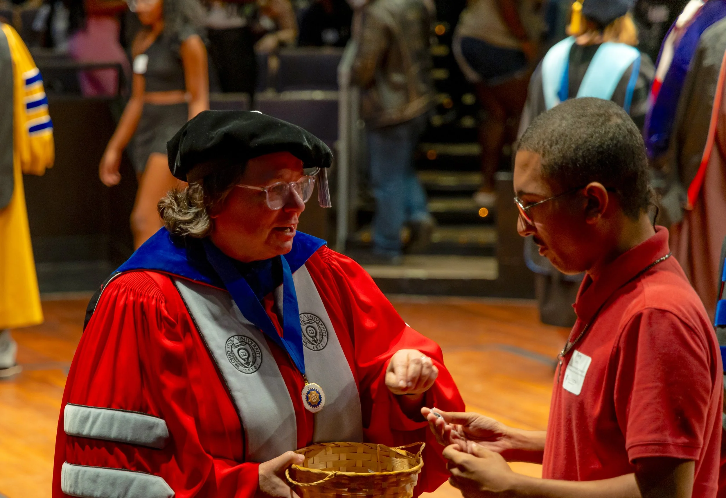 Before the ceremony, Into the Wild podcast host Raysean Ricks recorded a live show, building a warm-up for the evening with stories and conversation that welcomed freshmen to the vibrant campus life.