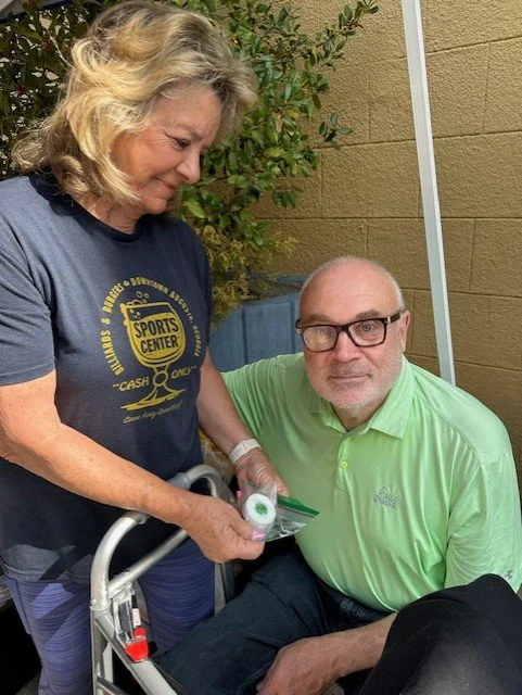 At left, Tracy Showman, Project Refresh chair, providing a HALO bar to a shower day guest. HALO donated over 50 bars to Project Refresh. (photo by Amy Zhou/the Bell Ringer)