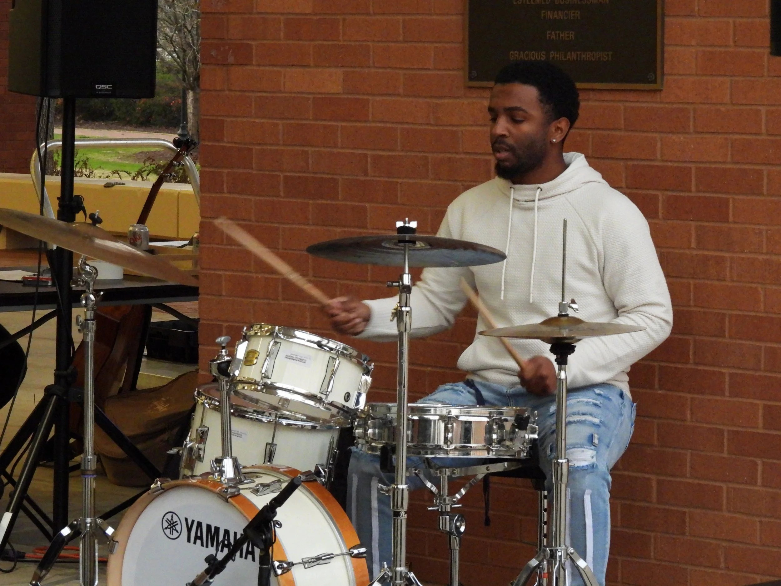 There were extremely talented performers that evening. From instruments, to singing, to poetry, everyone’s performances were well done and well received by the student audience. The first performer was one of the Maxwell Theatre staff members, Grant Allen, who sang two songs along with his guitar. From there, the audience was entertained by a pianist, two vocalists and a drummer, all who signed up to perform prior to. Rubio announced that the drummer messaged Maxwell to see if a drum set could be provided, and it was allowing another Maxwell staff member, Tyles Smiley, to showcase his percussion talents.