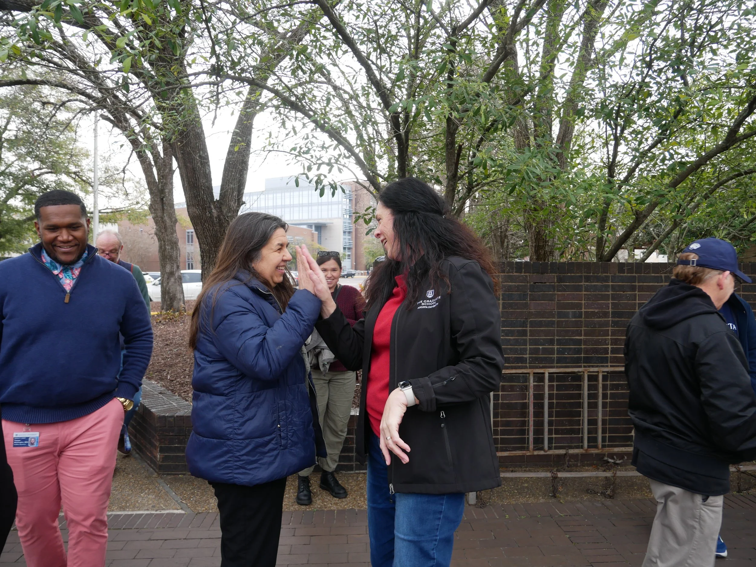 On a bit of a chilly February morning at Augusta University’s Health Sciences Campus, about 20 faculty, staff and students put on their walking shoes and gathered outside Greenblatt Library for a different kind of meeting. This one was without an agenda, a conference room, a Teams meeting, or a PowerPoint.