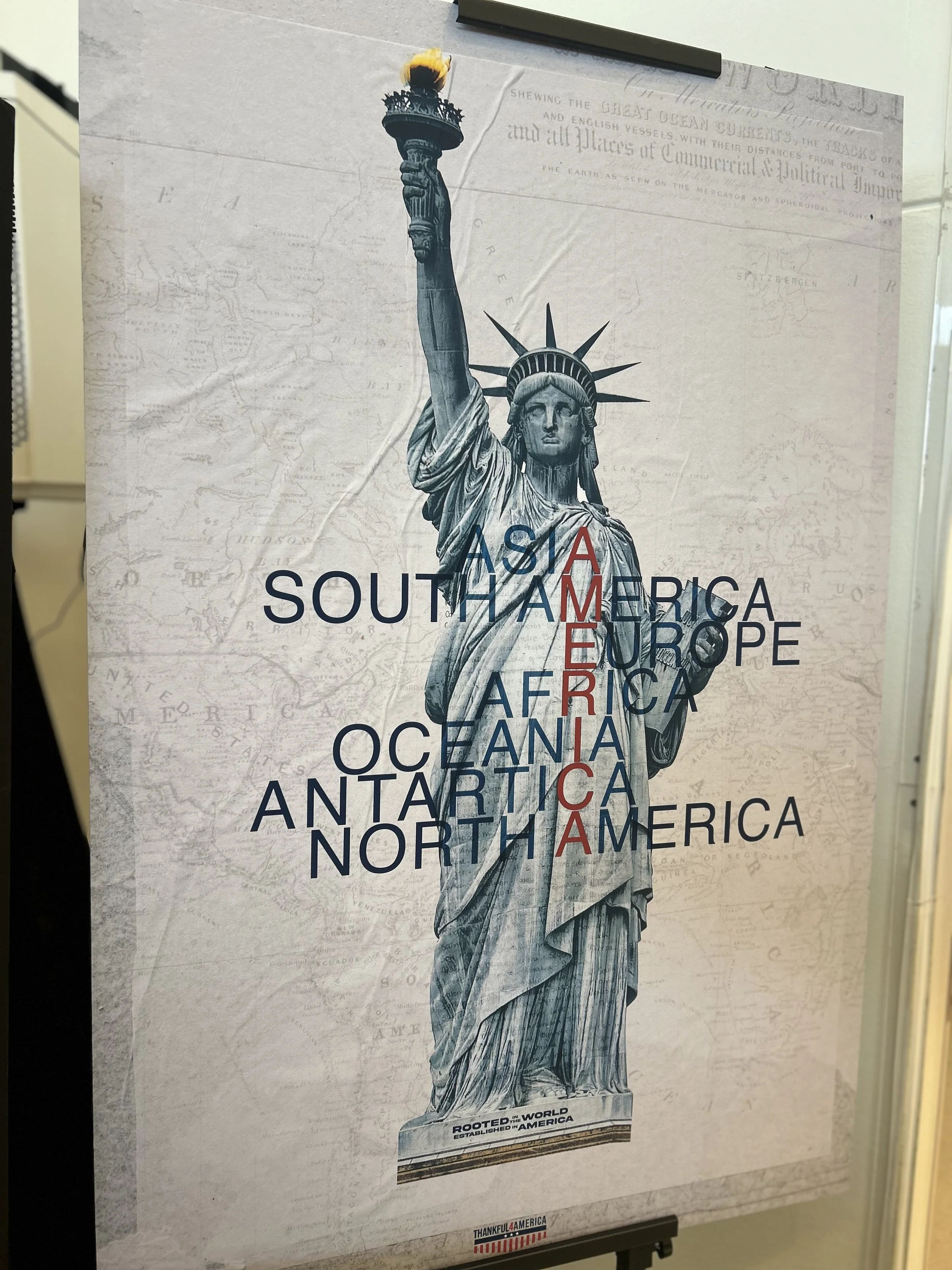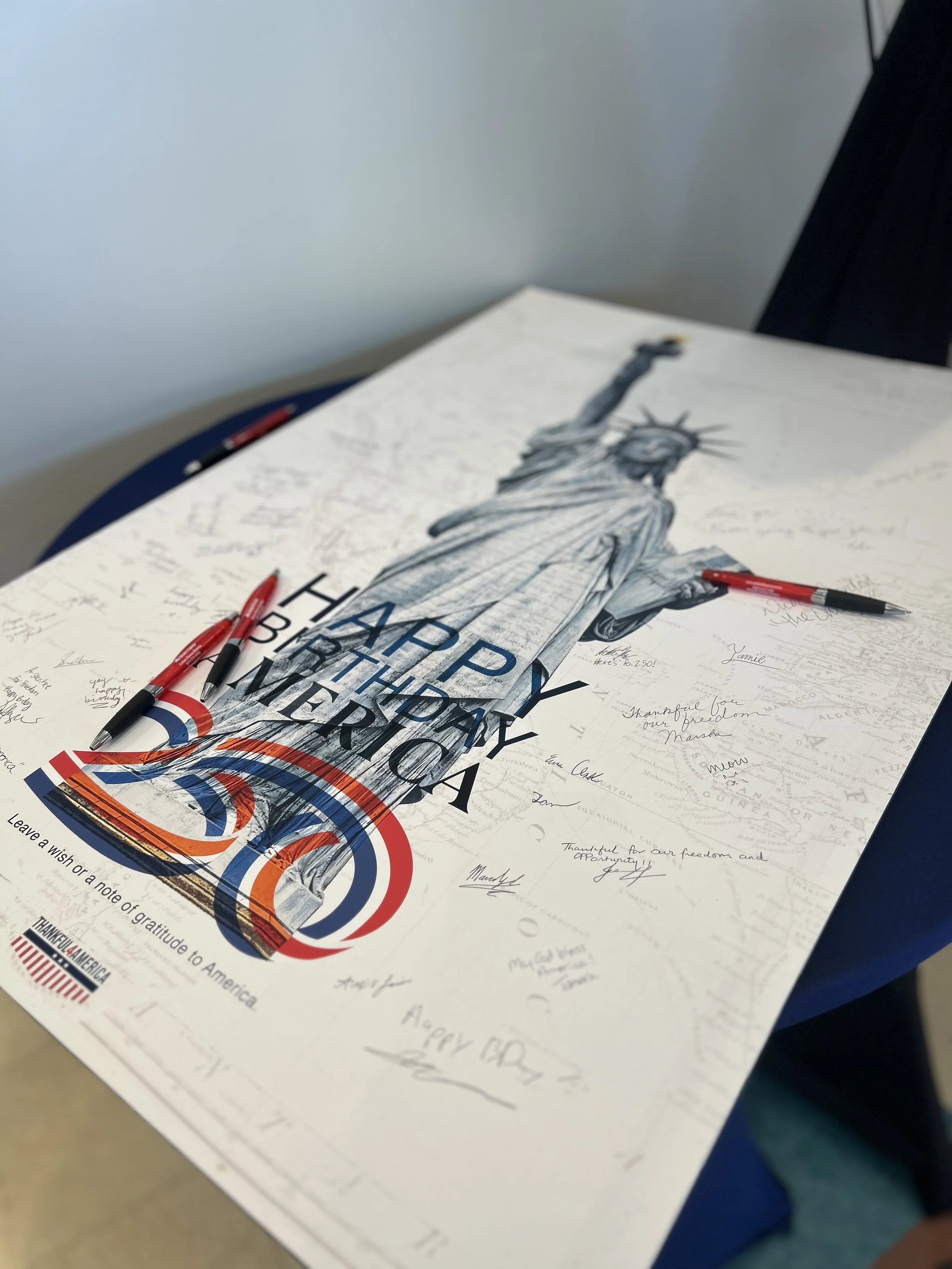 A happy birthday, America, poster card for the 250th. (photo by Caelyn Dockal)