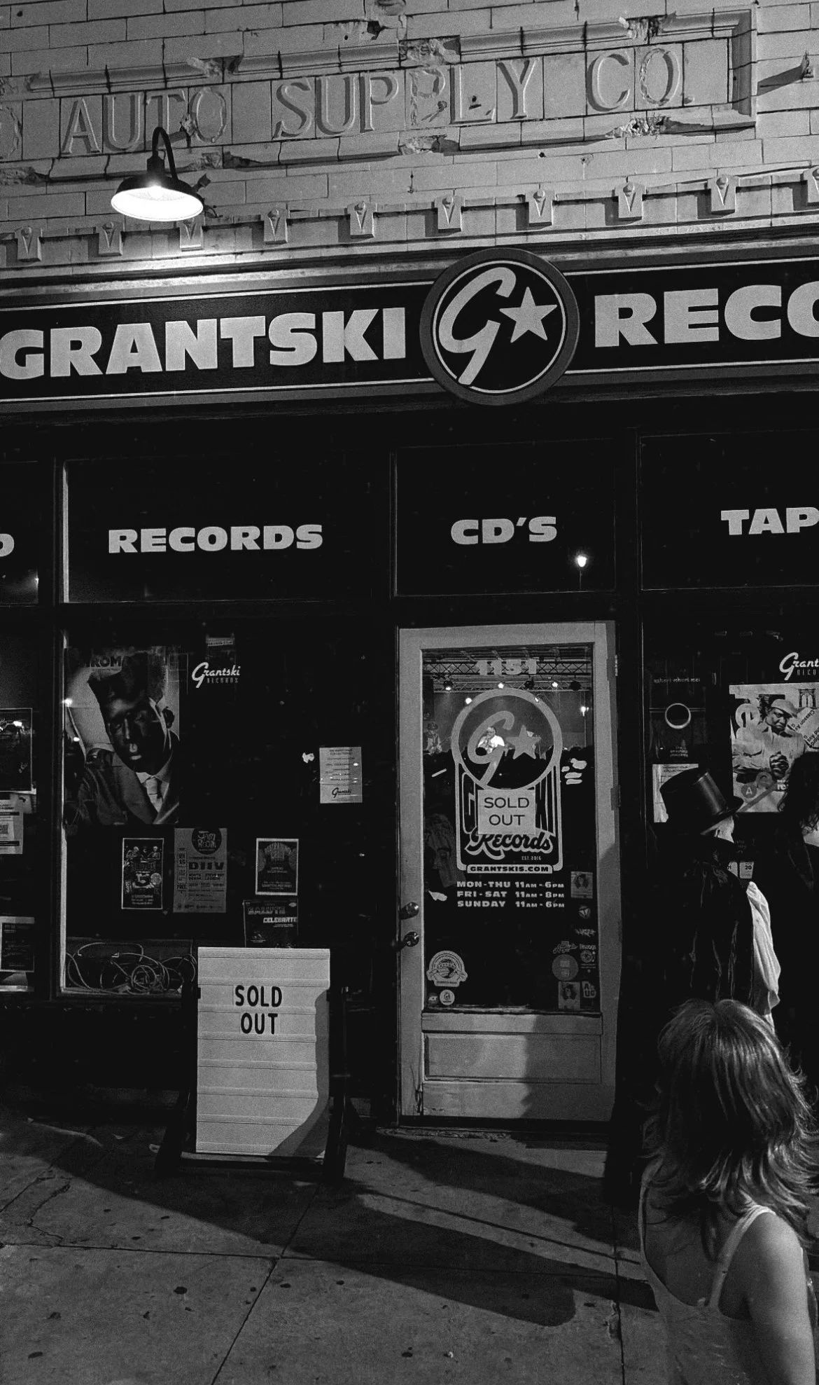 Outside the record store, featuring the “sold out” sign. (photo by Caelyn Dockal)